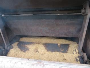 もみ殻をこの段階で取出すと、炭と非結晶シリカが残ることになります。