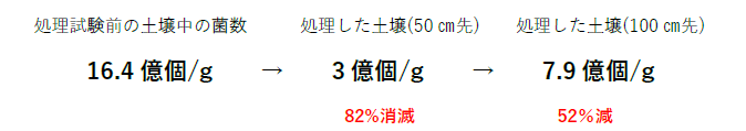 WEF技術開発の特許技術「大気中生成活性酸素」を土中に注入するだけで、土壌中菌の80%を分解させることに成功。