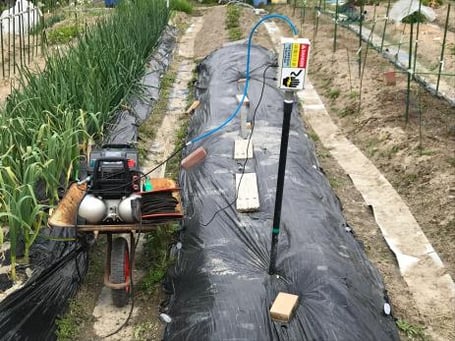この塩ビ管を畑の畝の底近くまで差し込み、コンプレッサーで空気を送り込みました。