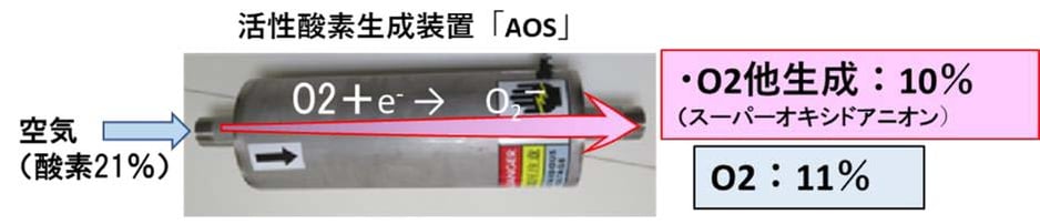 活性酸素生成装置「AOS」の特徴は、大気中で低コストで大量の活性酸素を生成することが出来