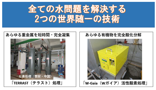 さらに、従来より開発・販売している無機物処理技術「TERRAST」と組み合わせることで、あらゆる水問題を解決できると考えております。